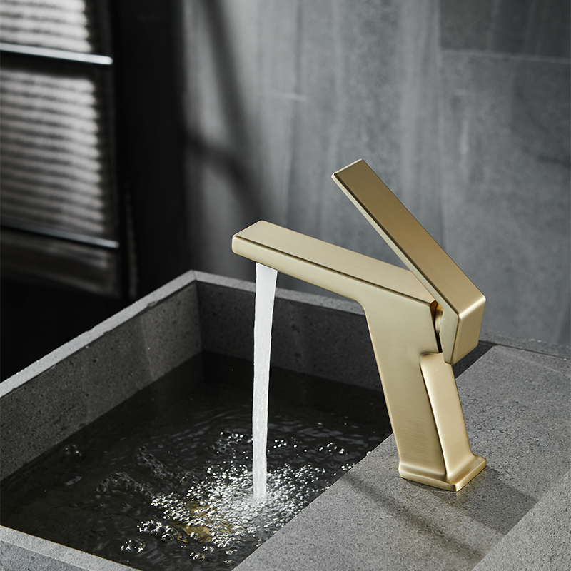 Modern Basin Mixer Faucet Brass Single Handle Brushed Gold Vanity Faucet Deck Mounted Bathroom Sink Faucet