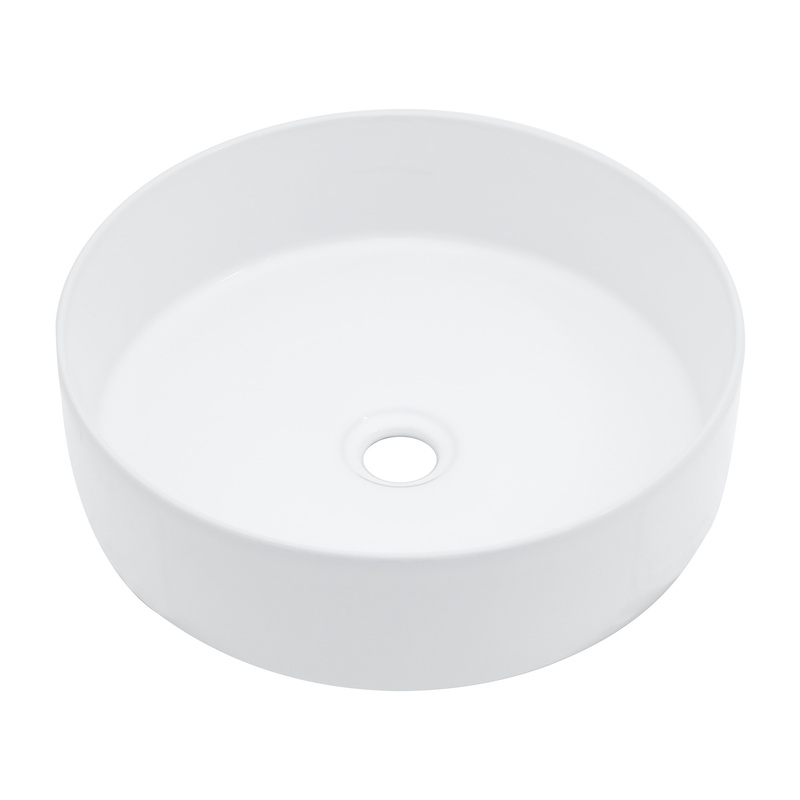 Modern White Ceramic Bathroom Sink Hand Wash Basin Round Vessel Hotel Porcelain Countertop Art Basin