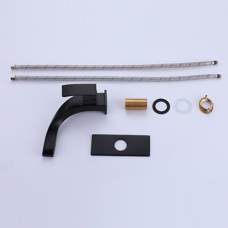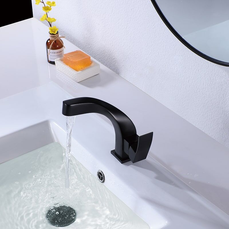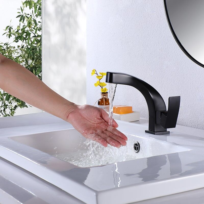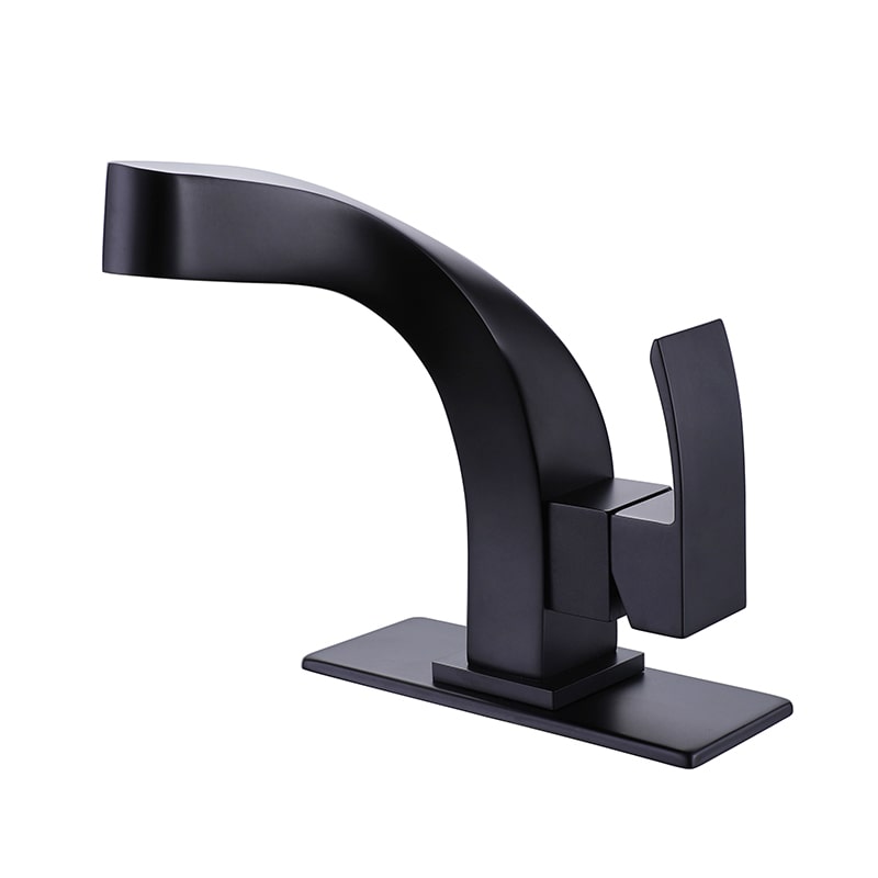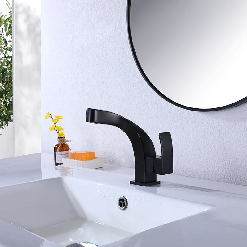 Nuevo Grifo de lavabo negro mate de diseño, grifo de agua de latón con un solo orificio,