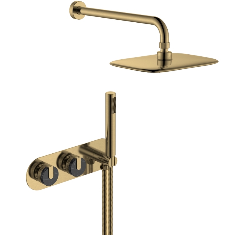 New Marble Handle Shower Set in Wall Bathroom Shower Mixer Wall hang Gold Shower Panel