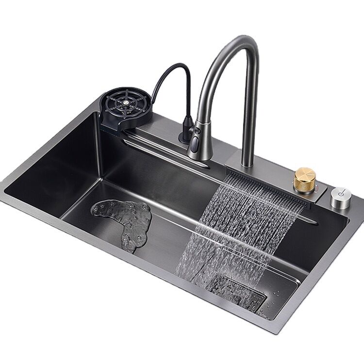 Stainless Steel Nano Step Sink Kitchen Multifunctional Kitchen Sinks Dark Grey Single Bowl Waterfall Kitchen Sinks