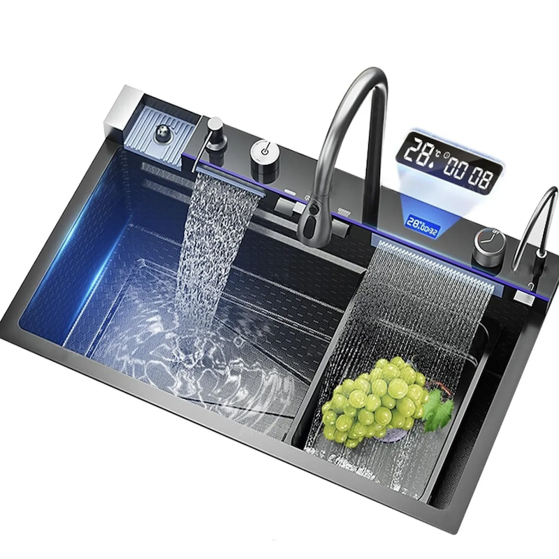 Waterfall Smart Kitchen Sinks China Luxury Organizer Rack Dish Storage Rack Multifunctional Large Sink Kitchen