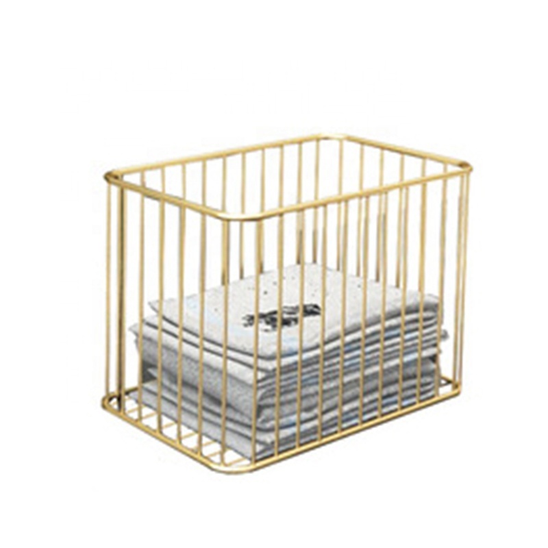 Wholesale Cuboid Clothes Basket Laundry Hotel Bedroom Gold Iron 40 cm Clothes Storage Basket