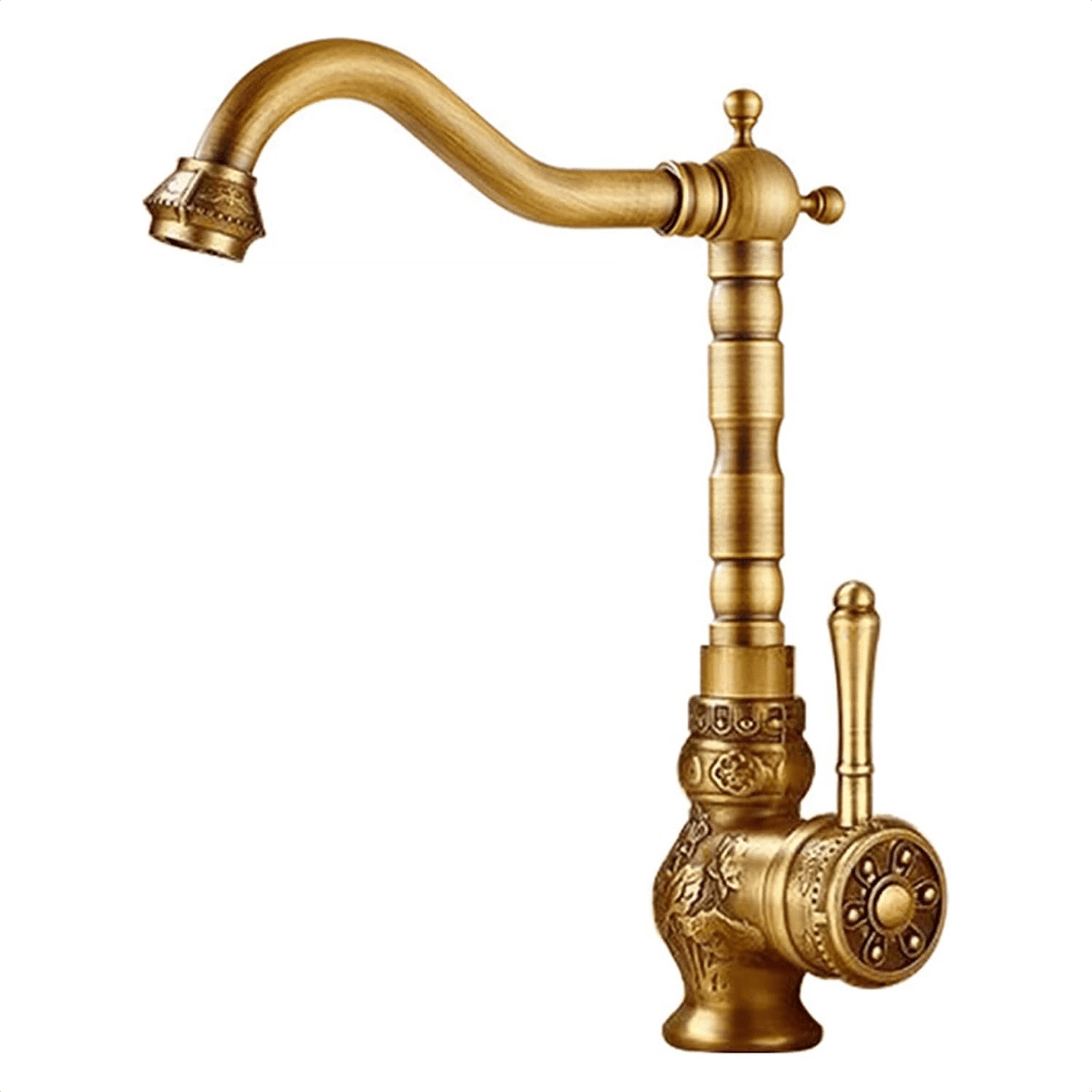 European Antique Retro Single Hole Copper Faucet Deck Mounted Rotatable