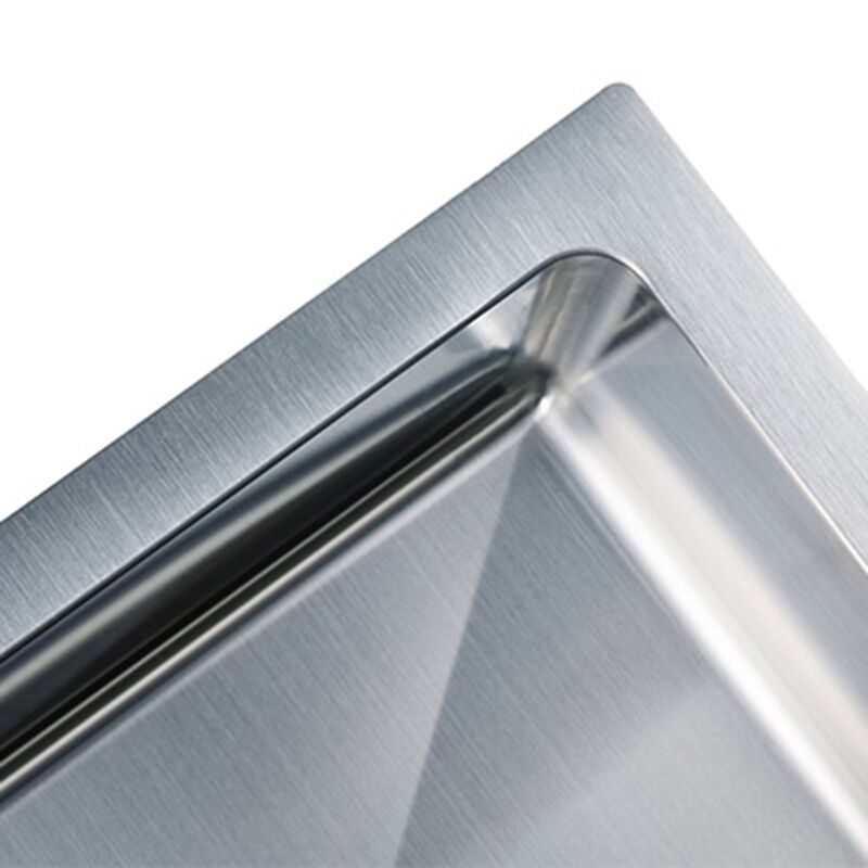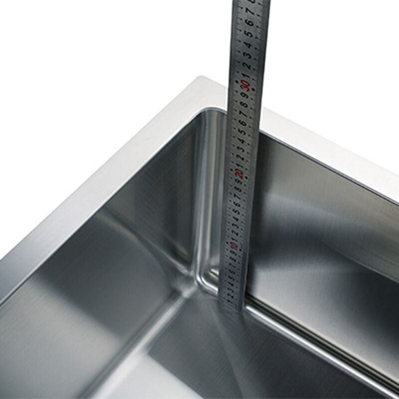 Engineered for complete drainage, with a gently sloped bottom that prevents standing water inside the bowl. Optimized angle keeps glassware from falling when placed in the sink Enriched Silver inside the coating will stop the acidic contaminants from water and air boning into the stainless steel. Our secret formula brings the sink highest scratch resistance and surface integrity ever than before.deep single bowl sink to contain splashing and fit your tallest pots and stacks of dishes, accommodate your largest kitchenware.