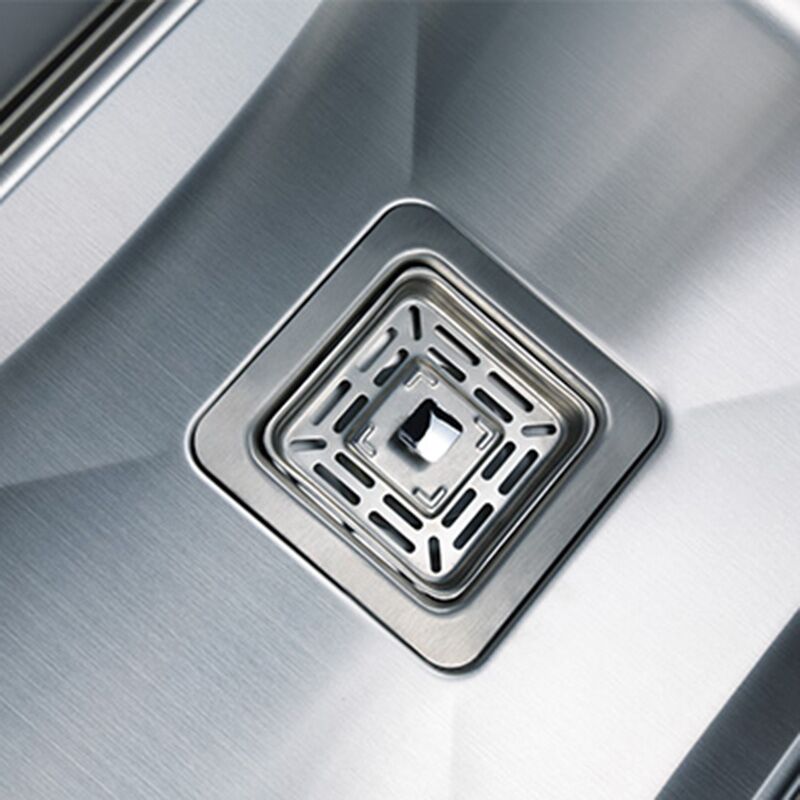 | Feature | Elegant and functional drain grooves Commercial grade premium satin finish Kitchen sinks are guaranteed to never rust Highest quality 304 stainless steel construction Distinctive angular zero radius curved corners designed for Functionality and easy cleaning Matching grid and strainer Fully undercoated and padded with multi-layered sound-eliminating technology, also prevents condensation Rear standard 3 1/2″ drain opening, providing maximum storage and Corner radius Chrome-plated stainless steel construction Equipped with vinyl feet and protective bumpers Protects sink from scratches and general daily use Does not include a tailpiece Features removable basket for convenience All Kitchen Sinks have a 5 Year Limited Warranty |