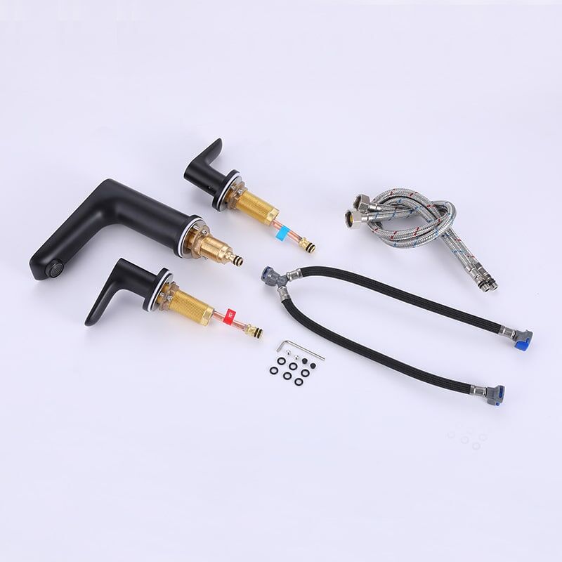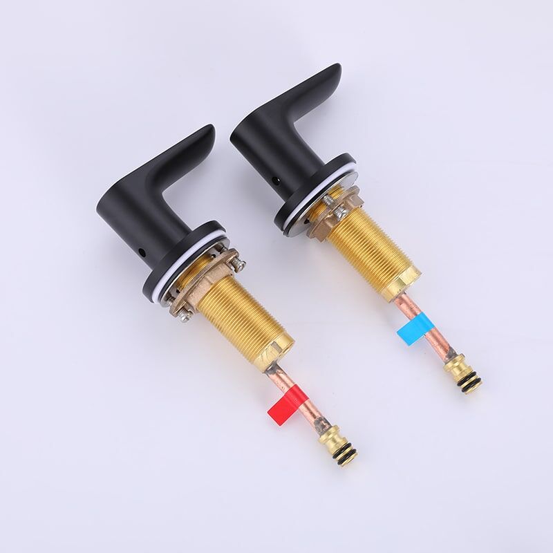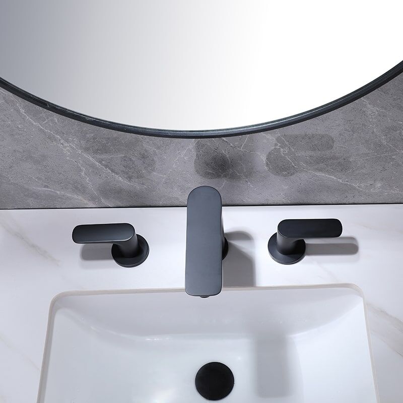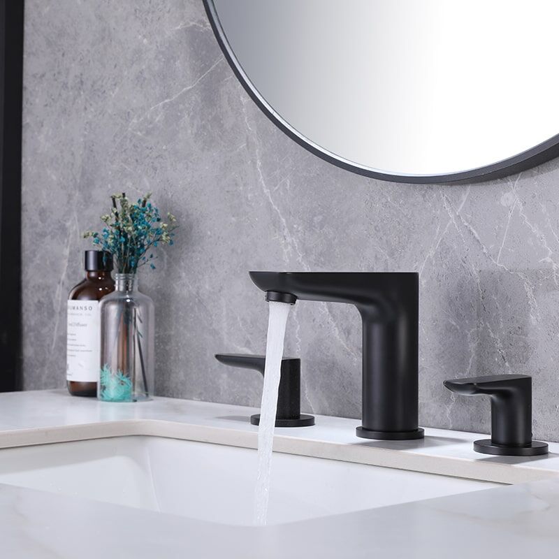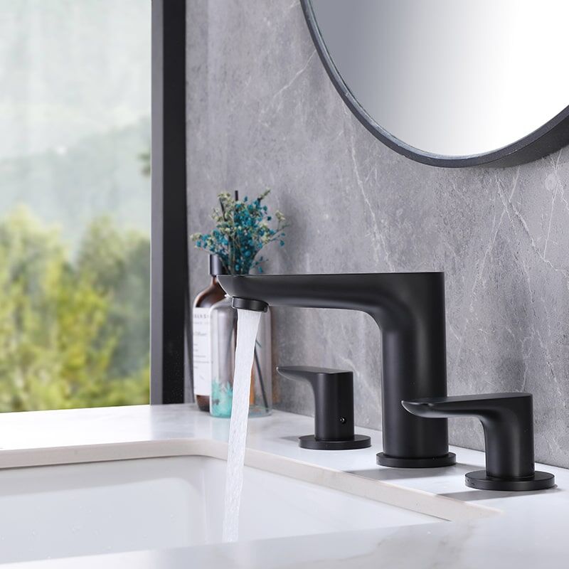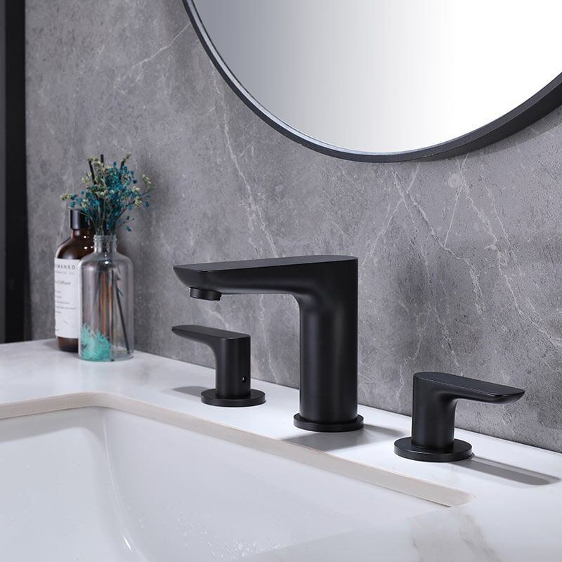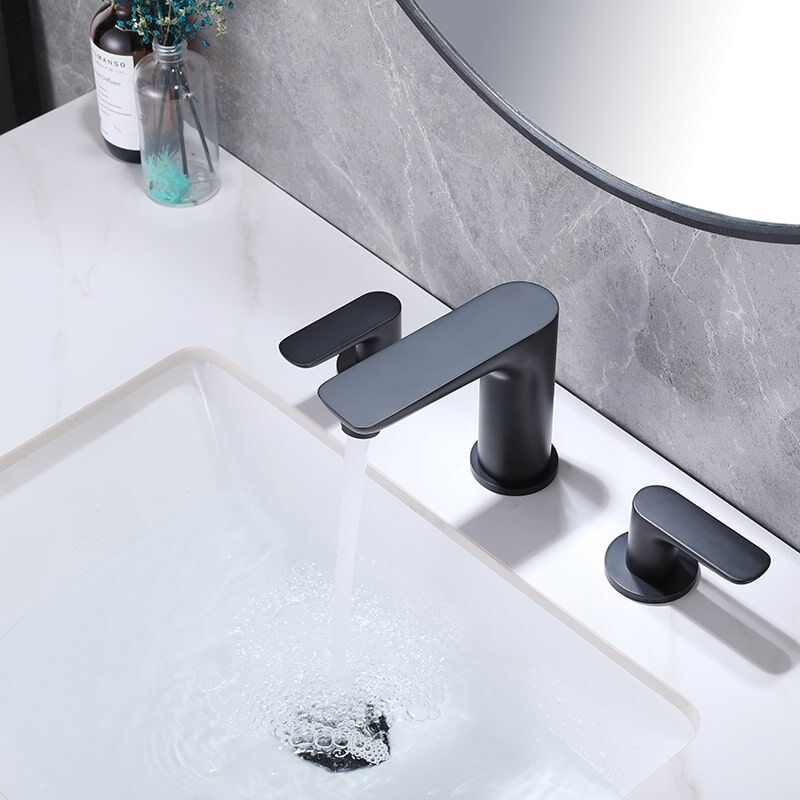 Robinet d'évier de salle de bains en laiton noir mat à 2 poignées monté en Chine, robinets de lavabo de bureau à 3 trous montés en usine