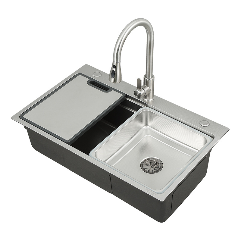 2025 Newest Design Nano Decor Stainless Steel Kitchen Sink Above Counter with Super Big Drainer Strainer 75×46 Three Holes