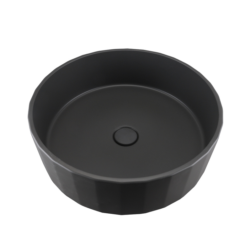 Black Above Counter Bathroom Concrete Cement Round Stripe Black Bathroom Basins
