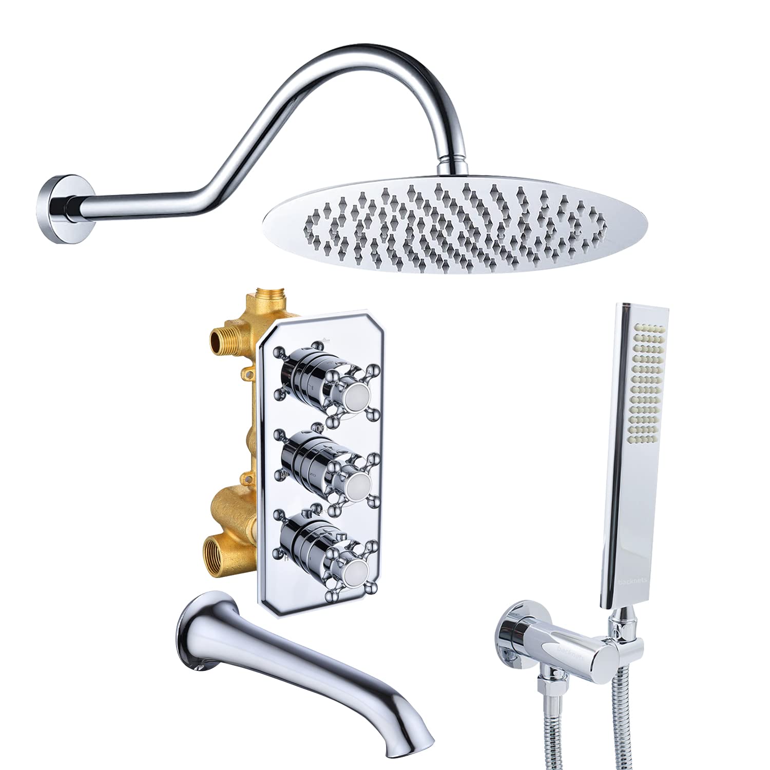 Brass Chrome Shower Mixer Set Bathroom Rain Shower Tap System Set Modern Shower System with Handheld Head
