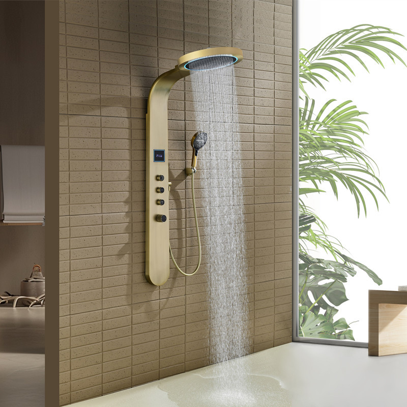 Brass Spool Rain Shower System Piano Key Brushed Gold Led Shower Set