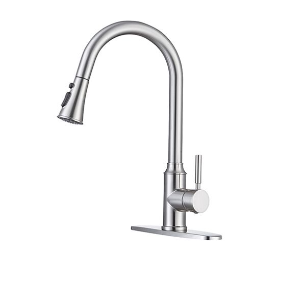 Robinet de cuisine extractible en Nickel brossé à Arc élevé à poignée unique, robinets d'évier de cuisine en acier inoxydable à un seul niveau
