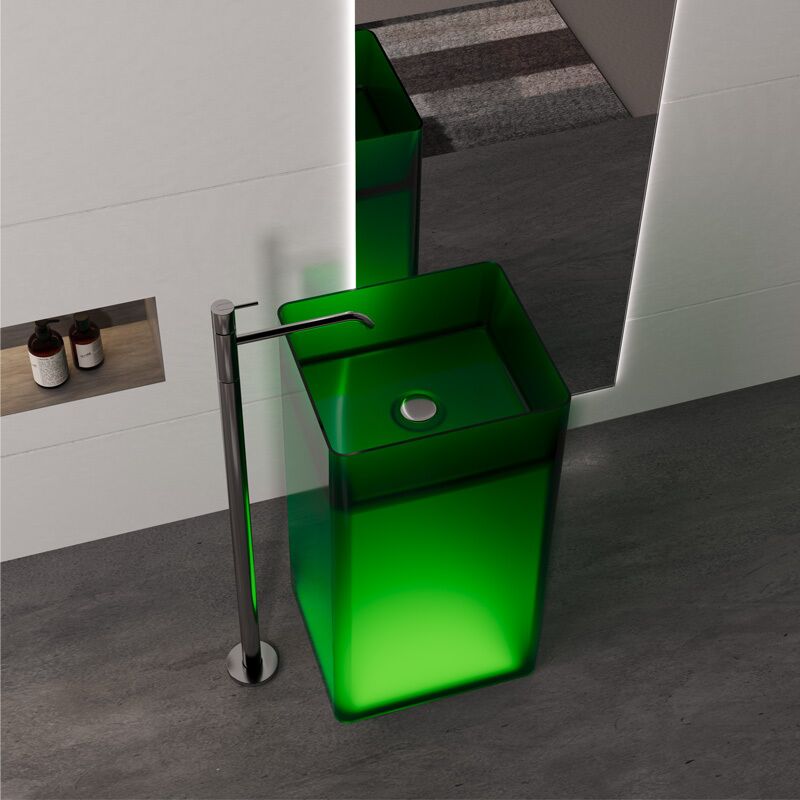 Crystal clear Transparent Basin square Freestanding Wash Basin with Floor Bathroom Sinks