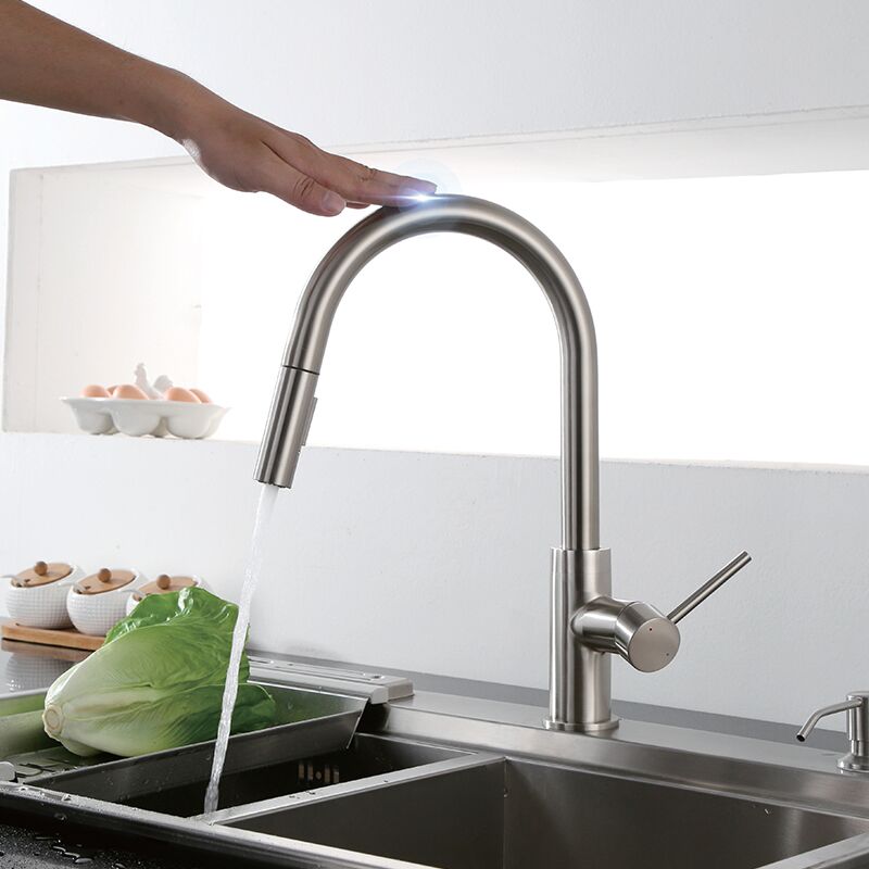 cUPC certified non-contact single handle pull-down kitchen faucet with sprayer