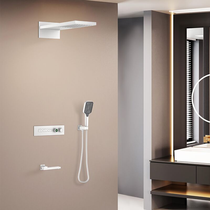 Embedded Shower Faucet White All Copper Square Flush Mounted Wall Piano Key Thermostat Shower Set
