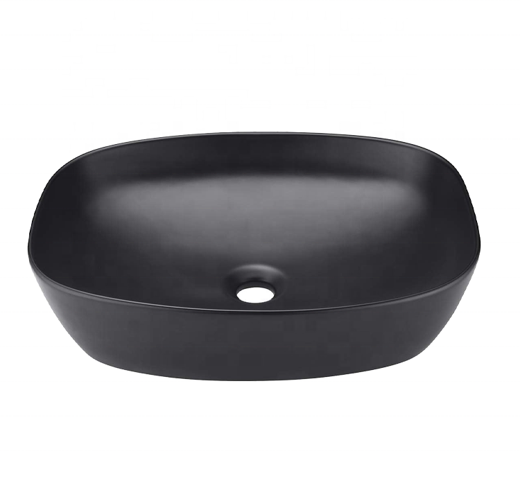 High Quality Matte Black Ceramic Sanitary Ware Modern Rectangular Oval Shape Bathroom Art Basin Sinks for Hotels