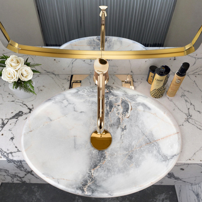 Hot Selling Traditional Style Blue Marble Oval Shape Ceramic Vessel Basin Porcelain Wash Art Basin