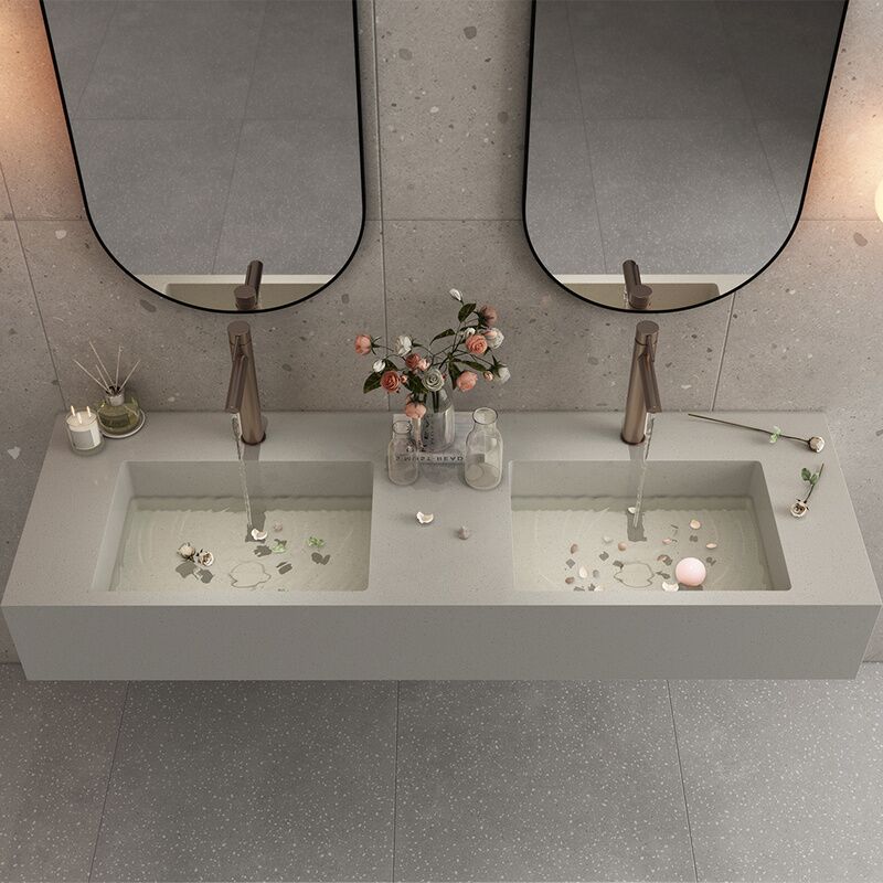 Hotel Commercial Project Rectangle Cement Vessel Basin Wall Hung Double Bowl Hand Wash Basin Concrete Big Bathroom Sink
