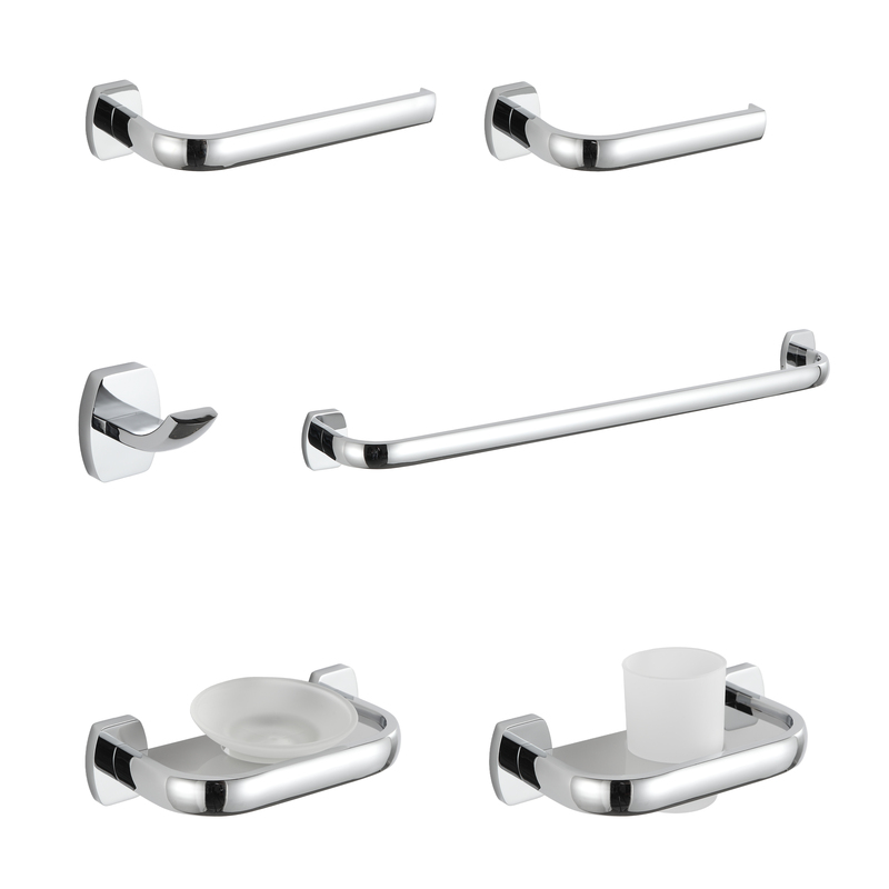 Hotel Commercial Wall Mounted 6 Pieces Brass Chrome Bathroom Accessories Set