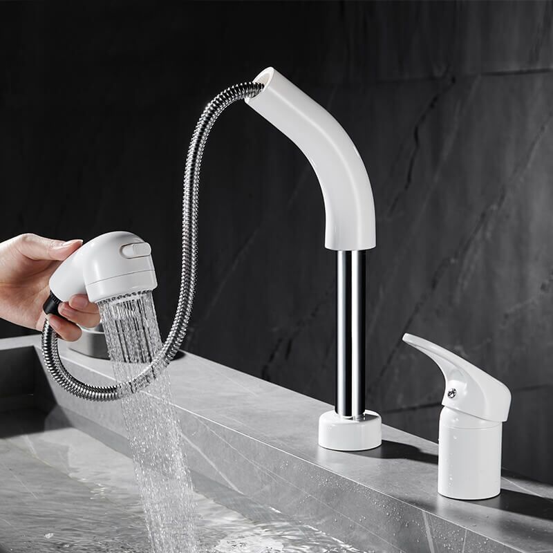 Lavatory Vessel Bathroom Faucet height-adjustable White Waterfall Faucet Sink Single Handle Hot and Cold Bathroom Sink Faucet