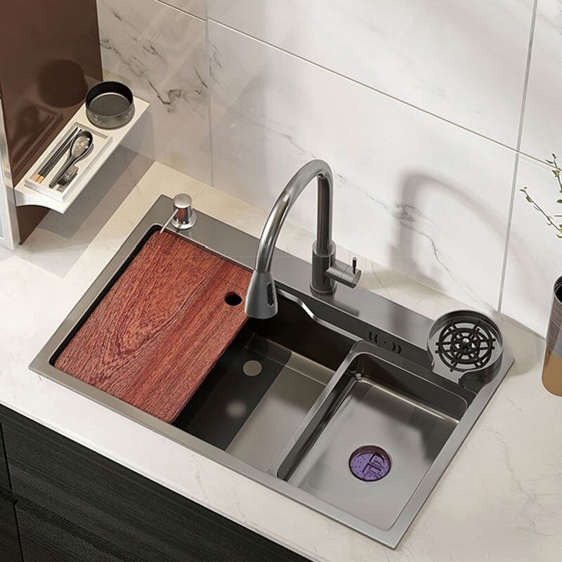 Luxury Bar Double Sink Bowl Commercial Gold Black Apron Handmade Steel Kitchen Sink