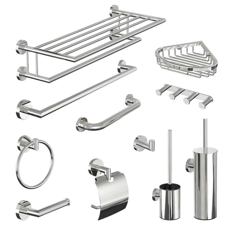 Modern Chrome Bathroom Hardware Set Stainless Steel 304 Towel Rack Customized Hotel Wall Mount Hooks Bathroom Accessories Set