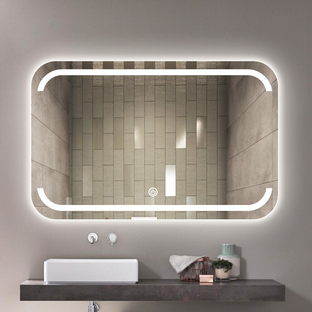 Miroir rectangulaire moderne avec affichage de l'heure, salle de bains, personnalisé, désembueur rétro-éclairé par LED, miroir intelligent