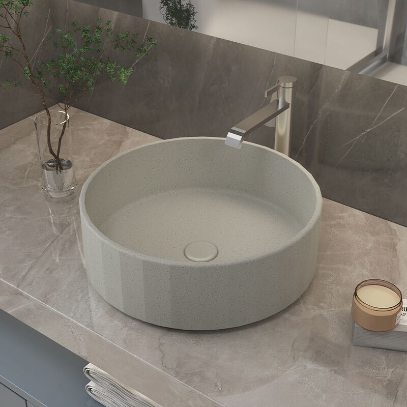 Round Washbasin Countertop Bathroom Art Basin Concrete Rectangle Cabinet Hotel Commercial Table Top Cement Sink for Bathroom