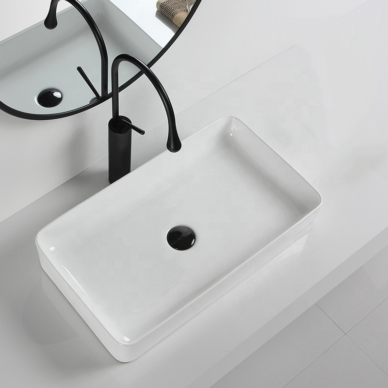 White Rectangular Shape Ceramic Hand Washing Sink Custom Modern Bathroom Long Wash Basin