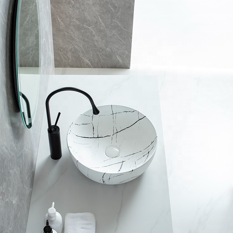 Wholesale Elegant Bathroom Lavabo High Quality White Marble Countertop Mounted Ceramic Washbasin