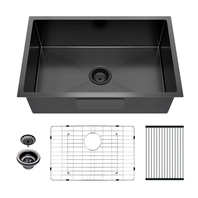Fregadero Handmade Sink Undermount Single Bowl Black 304 Stainless Steel Kitchen Sink