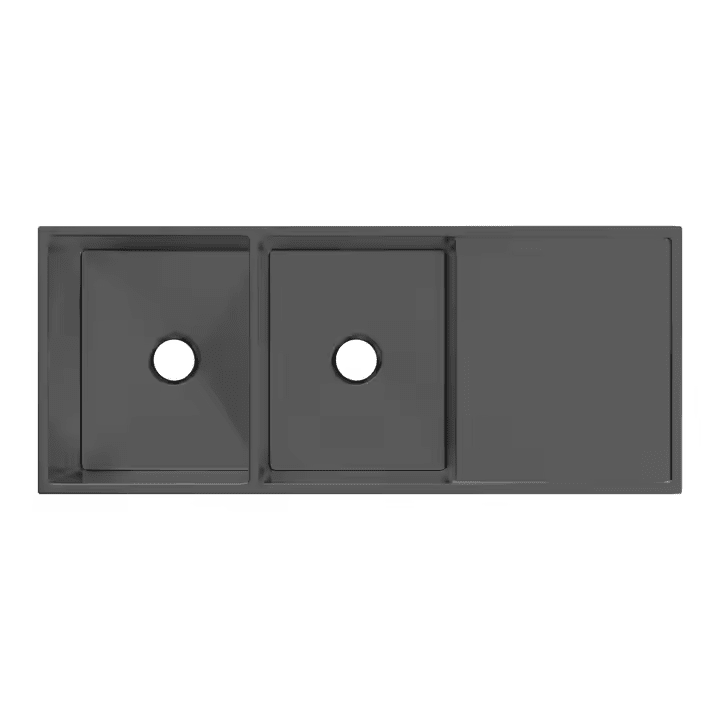 Handmade Kitchen Sink with Double Bowl Stainless Steel Drainboard in 12050 Nano Black Welding Customizable Colors