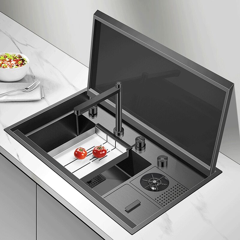 Handmade Undermount Multifunction Kitchen Sink Faucet Stainless Steel Bowl Sus304 Lifting Cold Hot Water 304 Stainless Steel