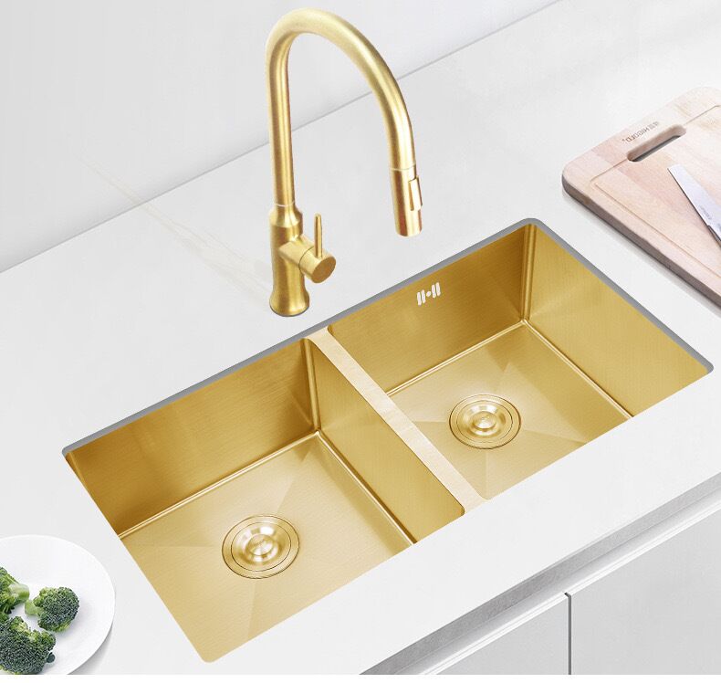 High Grade Stainless Steel Glod Double Bowl Undermount Handmade Kitchen Sink