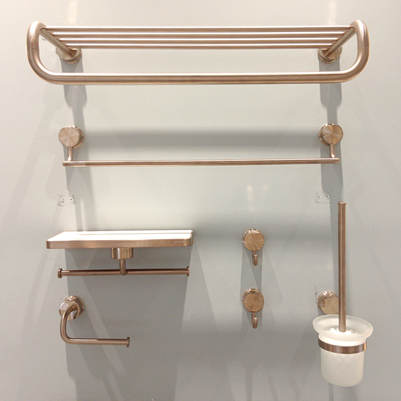 High Quality 304 Stainless Steel PVD Brushed Rose Gold Bathroom Accessories Set Wall-mounted Towel Rack for Hotel Shower Room