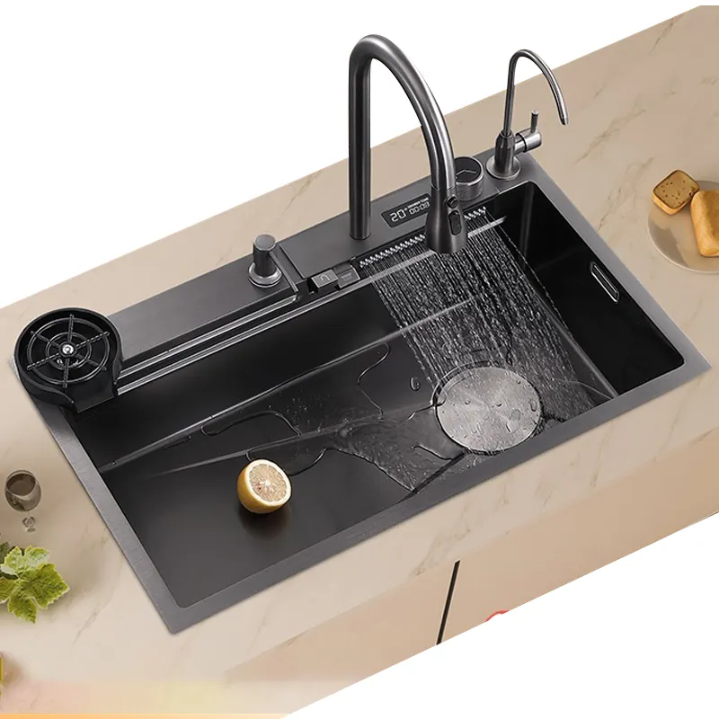 Hot Selling Modern NANO Technology Digital Display Gun Grey Multi-Function Piano Key Kitchen Sink with Kitchen Faucet Set
