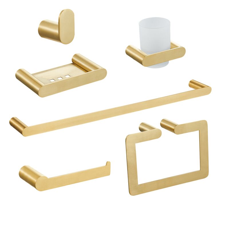 Hotel Wall Mounted Brushed Gold Bathroom Hardware Accessories Set 6 Pieces Stainless Steel 304 Bathroom Accessories Set