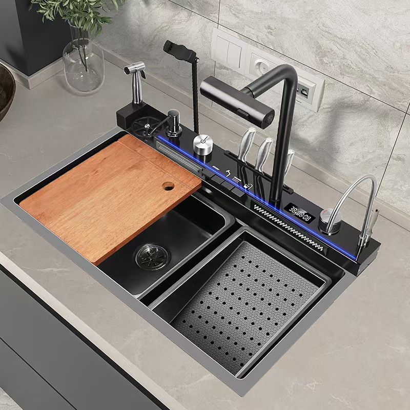 Kitchen Faucet and Sink Set LED Digital Display With Pull-Out Faucet Stainless Steel Kitchen Sinks