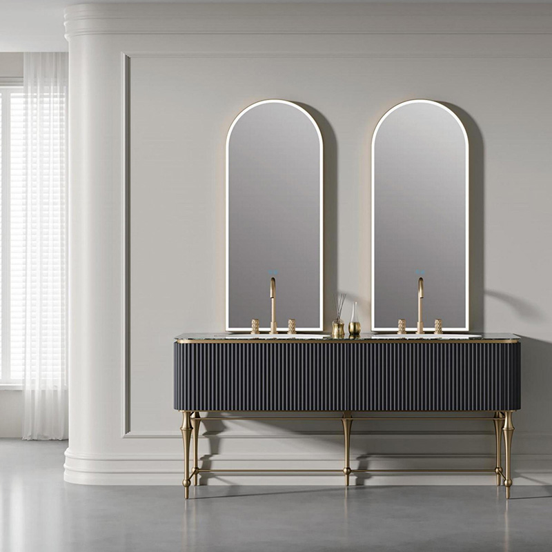 Luxury Rock Panel LED Mirror Bathroom Sink Cabinet Hotel Mirror Cabinet