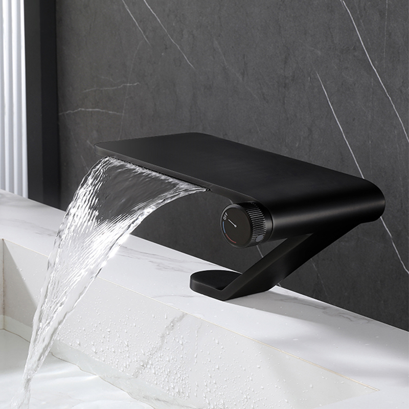Matte Black Waterfall Basin Mixer Faucet Brass Single Handle Wash Basin Faucet Deck Mounted Bathroom Sink Faucet