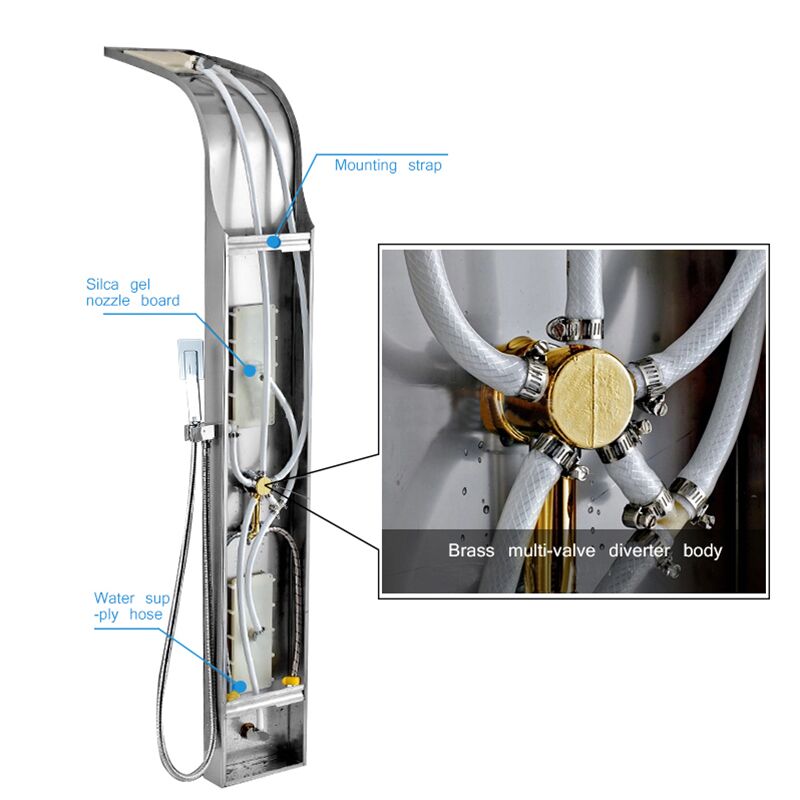 Durable shower panel adopt high precision ceramic cartridge which passes 500,000 on/off test, each part is 100% compatible, avoid leakage, and assures its long time use.Premium workmanship Each part of shower set was treated with premium workmanship and strict inspection, ensures its high performance, brings you better using experience.