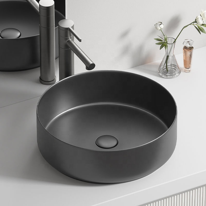 Modern Light Luxury Round Ceramic Hand Washing Sink Customized White Black Matte Lavatory Bathroom Basin