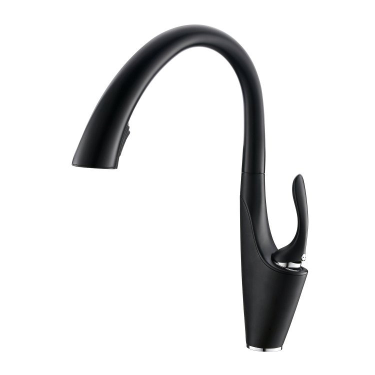 Modern Matte Black Kitchen Faucet Brass Deck Mounted Mixer Tap Pull Sprayer Ceramic Easy Installation Kitchen Sink Mixer Faucets