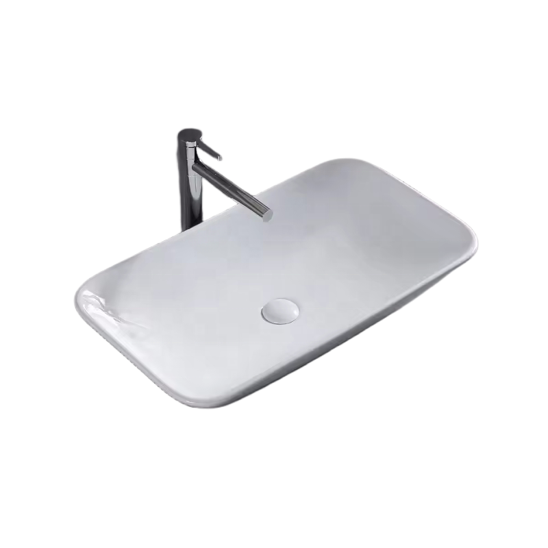Modern Style Rectangular Ceramic Basin Vessel Sink Slim Counter Hand Washing Bowl for Bathroom