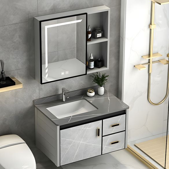 Modern Waterproof Bathroom Vanity Cabinet with Mirror Wall-Mounted Style PVC Ceramic