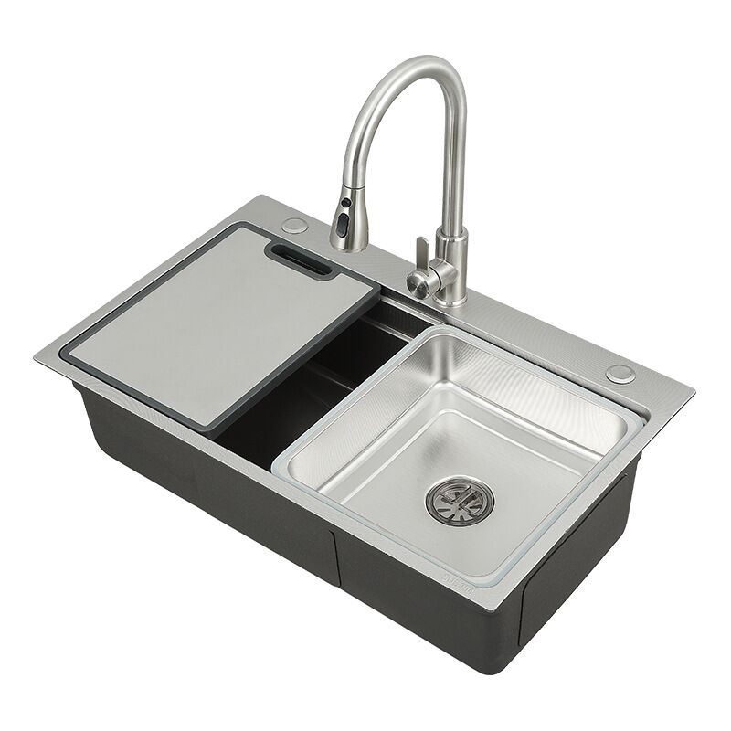 2025 Reka Bentuk Terbaru Nano Hiasan Sinki Dapur Keluli Tahan Karat Di Atas Kaunter dengan Penapis Super Besar 75×46 Tiga Lubang