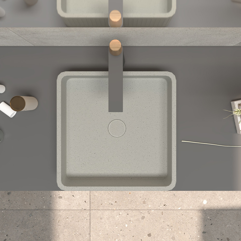 China Wholesale Hotel Bathroom Modern Sink Concrete Basin Grey square Striped Handmade Concrete Wash Gargle Basin
