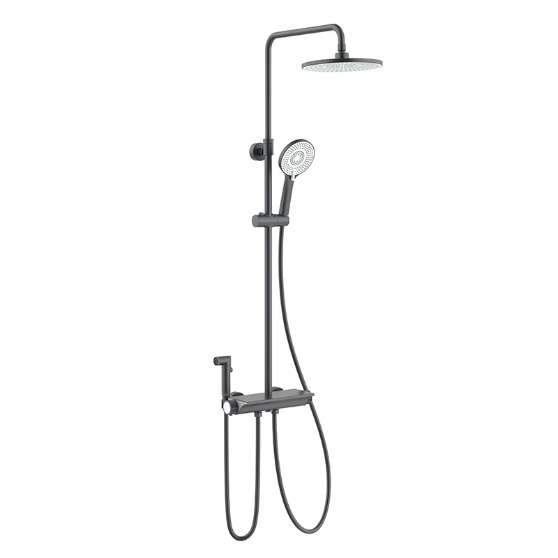 Contemporary 10-Inch Brushed Gun Metal Top Shower Set Thermostatic Faucets Soft Rain Massage Jet Sprays Popular In-Wall Design