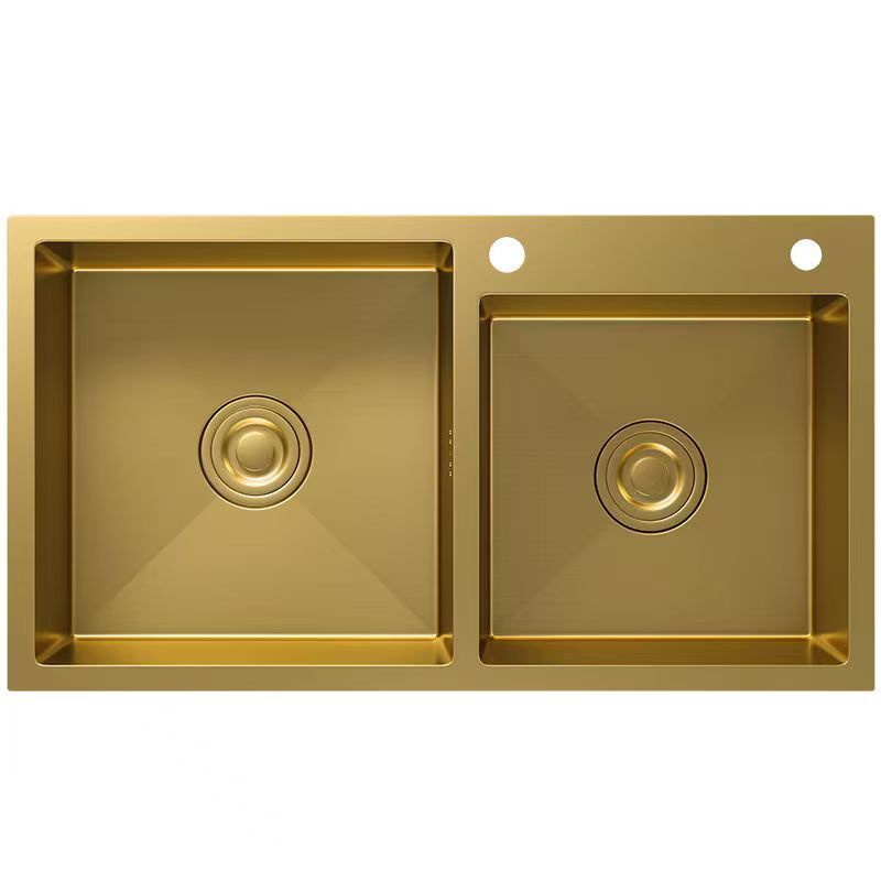 Customizable Gold Kitchen Sink Handmade Stainless Steel 201/304 Single & Double Bowl Two Holes Sizes 7843/7848/6050/7845