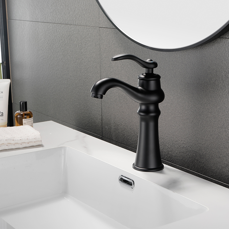 European Wash Basin Faucet Matte Black Brass Deck Mounted Vanity Faucet Single Hole Taps for Bathroom
